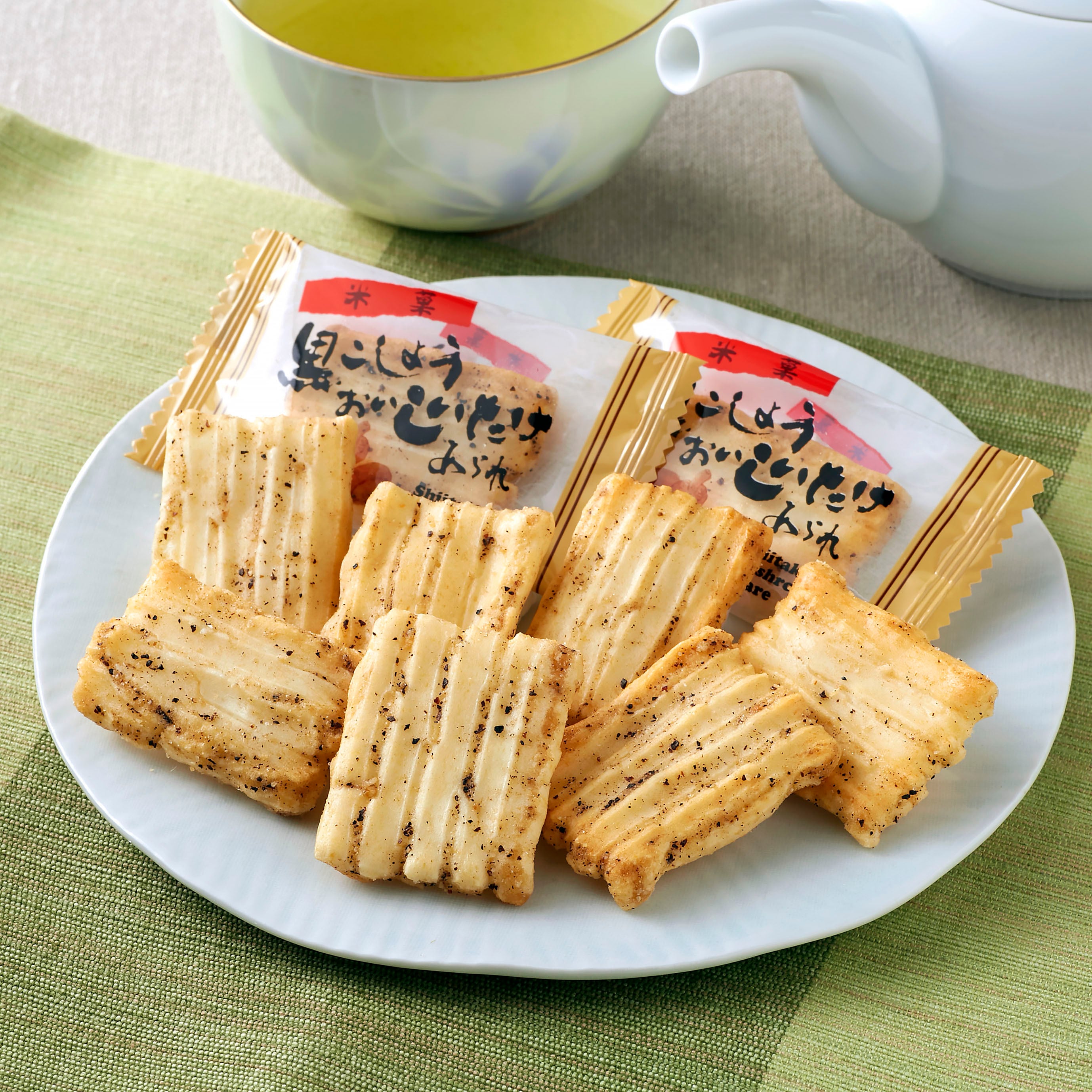 国産もち米に、香り高いしいたけ粉末と黒こしょうのスパイスをブレンドしました。優れた風味が口いっぱいに広がります。